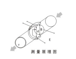 測量流量時(shí),導(dǎo)電性液體以流速V流過垂直于流動(dòng)方向的磁場,導(dǎo)電性液體的流動(dòng)感應(yīng)出一個(gè)與平均流速成正比的電壓,其感應(yīng)電壓信號通過與液體直接接觸的電極檢出。對于同一流量計(jì)S、B、d為常量,所以流量與感應(yīng)電動(dòng)勢E(或流速V)的大小成正比。