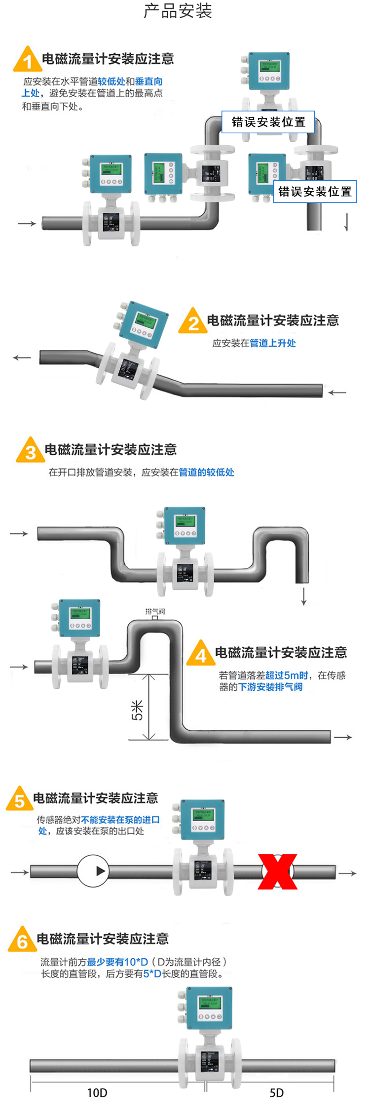 電磁流量計有很多種安裝方式,所以豎直安裝并沒有什么影響,這是可以的,它的關鍵點在于一些安裝位置不可以,下面青天特克就給大家介紹一下,以圖片為輔相信大家就可以很輕易的看懂了。